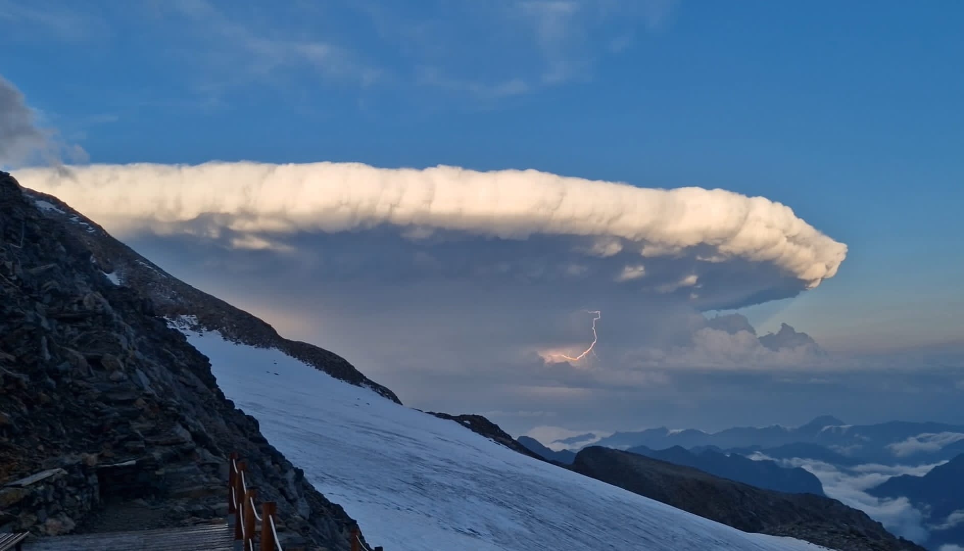 View of lighting striking in a cloud from the storm that just passed over us during our excursion to the Gnifetti Hut. Photo credit: Dr Will Malein.